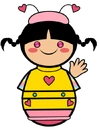 平时是粉红色、浅蓝色和浅黄色斜条纹的五分袖,有时会出现长袖戴黄手套版本。外景拍摄时戴着一顶草帽,身穿彩虹横条纹的短袖T恤和黄色的背带短裤,配白色运动鞋。